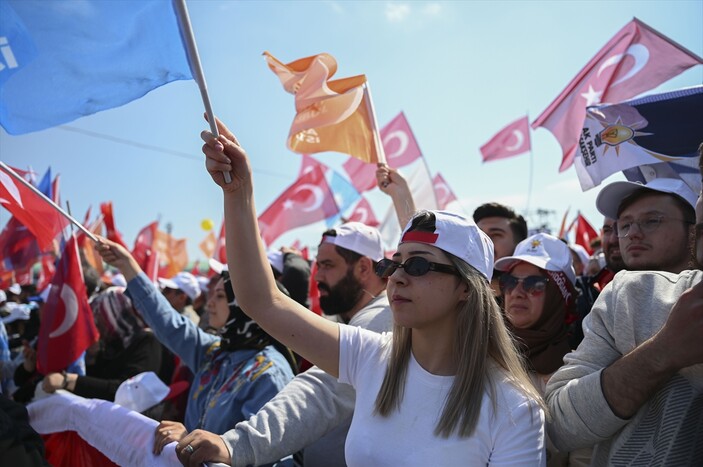 Türk siyasi tarihimizin en büyük mitingini gerçekleştiriyoruz, size bu yakışır. Saf saf hep birlikte dizildik, dünyaya hak ve adalet sözünü hatırlatmak için dizildik. Doğru adama doğru zamanda verdiğiniz destek sayesinde 21 yılda bu ülkede büyük devrimlerin, değişimlerin altına imza atıldı. Korkmadınız, sinmediniz, çekinmediniz... Türkiye; eğitimde, ulaşımda, enerjide, güvenlikte, sağlıkta ve bilişimde altyapısını tamamladı.