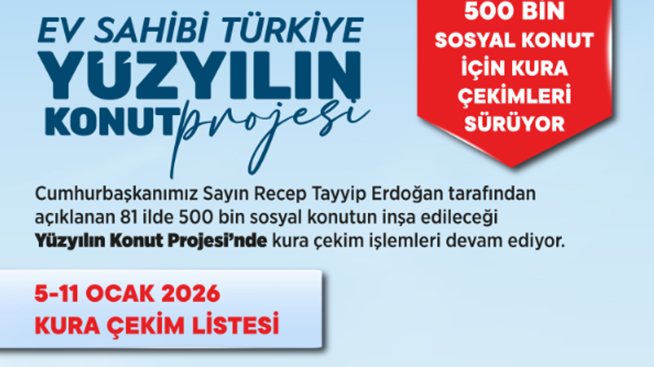 Çevre, Şehircilik ve İklim Değişikliği Bakanlığı koordinesinde yürütülen proje kapsamında, 5-11 Ocak 2026 tarihleri arasında yapılacak kura çekimleriyle hak sahipleri belirlenecek. Kuralar, noter huzurunda düzenlenecek “Konut Alma Hakkı ve Konut Belirleme Kurası” ile gerçekleştirilecek ve asil ile yedek listeler ilan edilecek.