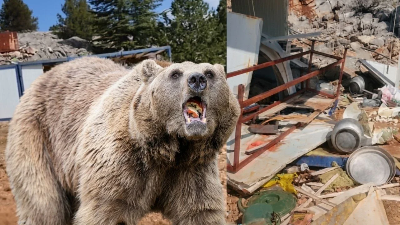 Kahramanmaraş’ta aç kalan bir boz ayı, maden sahasındaki şantiye alanına girerek büyük zarara yol açtı.