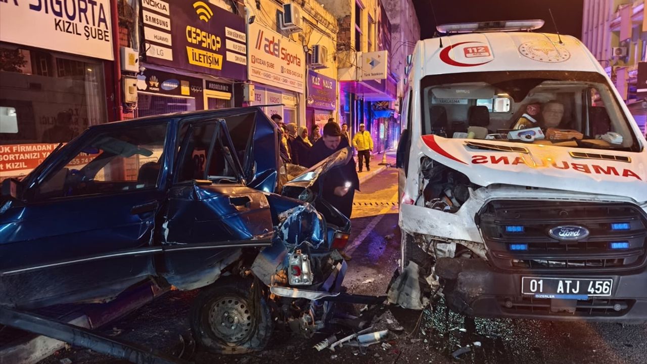 Sürücüsünün ismi öğrenilemeyen 01 ATJ 456 plakalı ambulans, Kızılırmak Caddesi'nde park halindeki otomobile çarptı.
