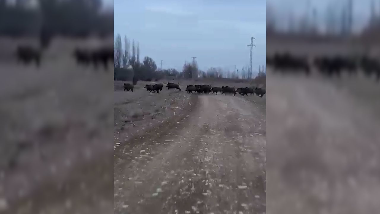 Soğuk hava nedeniyle doğal alanlarda yiyecek bulmakta zorlanan domuz sürüsünün, yerleşim yerlerine kadar indiği görüldü. Sayıca kalabalık ve büyük oldukları belirtilen domuzlar, mahalle sakinlerinde tedirginlik oluşturdu.