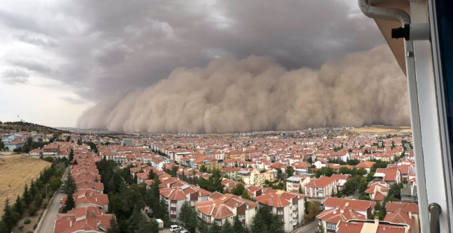 Ankara'nın Polatlı ve Haymana ilçelerinde etkili olan kum fırtınası hayatı felç etti. Bir anda gökyüzünü kaplayan toz bulutu nedeniyle vatandaşlar büyük panik yaşadı. Kum fırtınası Ankara merkezde de etkili oldu.