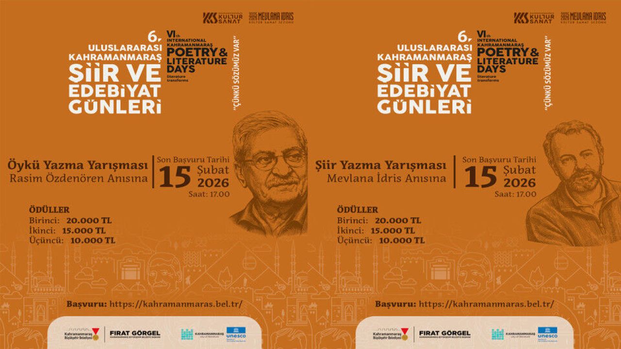 Edebiyatın farklı türlerine kapı aralayan yarışmalarda, başvurular 15 Şubat 2026 tarihine kadar kabul edilecek. Yarışmaya katılmak isteyen edebiyatseverler; katılım şartları, yarışma takvimi ve başvuru formuna 6. Uluslararası Kahramanmaraş Şiir ve Edebiyat Günleri Başvuru Formu internet adresinden ulaşılabiliyor.