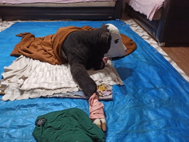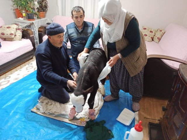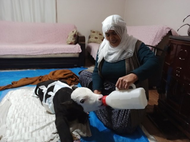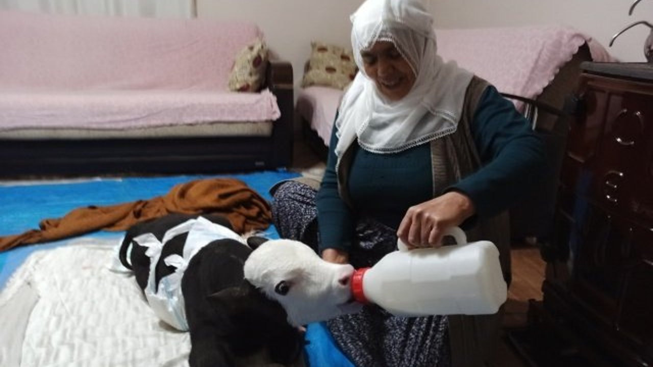 61 yaşından sonra evlat sahibi oldum dediği kör buzağıya evde bakıyor