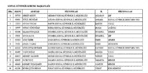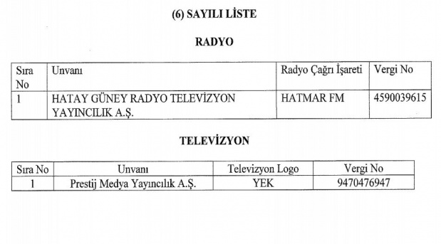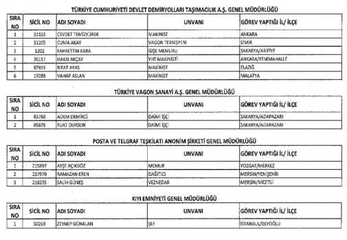 (1) SAYILI LİSTE