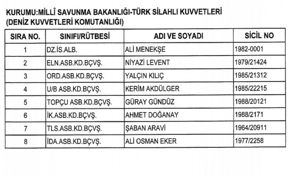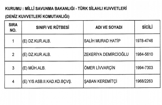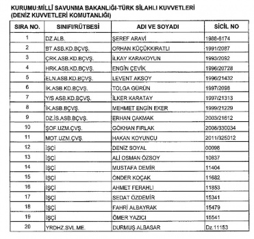 (1) SAYILI LİSTE - MİLLİ SAVUNMA BAKANLIĞI - TÜRK SİLAHLI KUVVETLERİ (DENİZ KUVVETLERİ KOMUTANLIĞI)