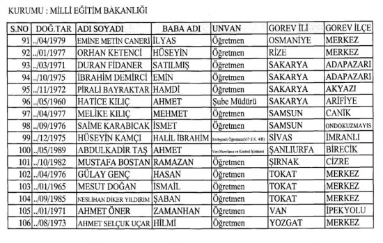 (1) SAYILI LİSTE - MEB