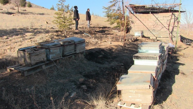 Arı kovanları kül oldu