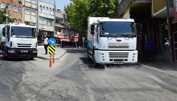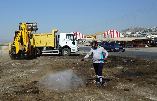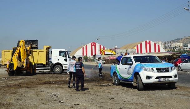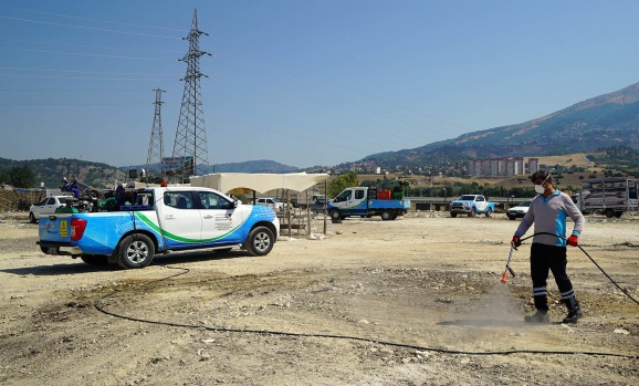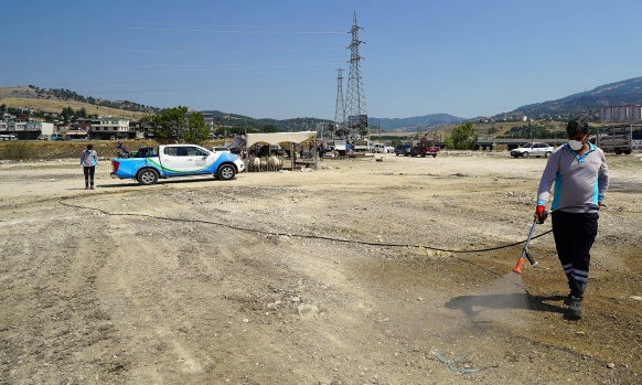 Büyükşehir Belediyesi bayram süresince herhangi bir salgın hastalık ve çevre kirliliğinin yaşanmaması için çöp konteynırları ile hayvan satış ve kesim yerlerinde ilaçlama çalışması gerçekleştirdi.
