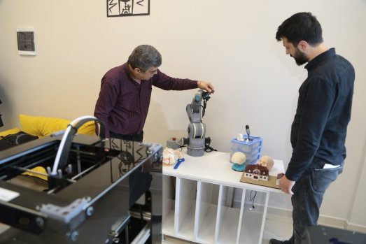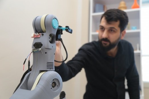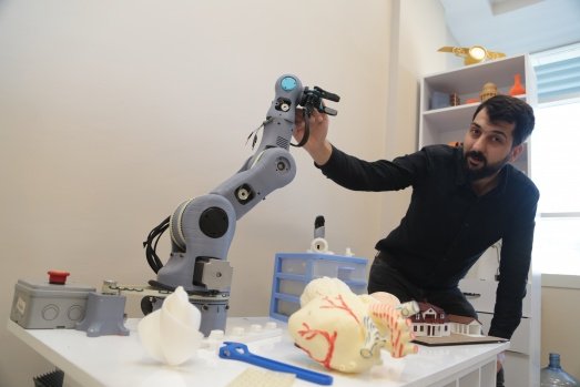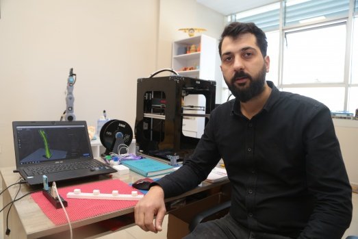 Çocukken çizdiği robotları yapmanın hayalini kuran Osman Ekici, Kahramanmaraş Sütçü İmam Üniversitesi Teknokent'te hem robot kol hem de üç boyutlu yazıcı yaptı.