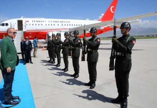 Erdoğan, havalimanında tören mangasını selamladı