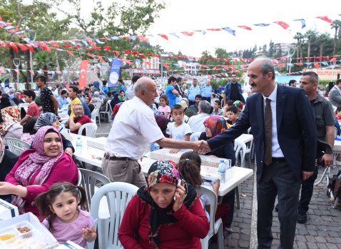 Dulkadiroğlu Belediyesi’nin geleneksel Tarihi Kapalı Çarşı ve Belediye Çarşısı iftarı Atatürk Meydanında gerçekleştirildi. Katılımın yoğun olduğu iftar programda konuşan Belediye Başkanı Necati Okay, “Bu soframızın bereketiyle birliğimiz ve dirliğimiz daim olsun” dedi.