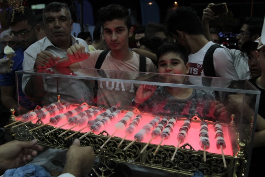 Festival kapsamında kurulan stantlarda bir firmanın dondurmadan yaptığı kebap ilgi çekti.