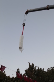 Dünyanın en uzun dondurma denemesi için dondurma vinçle alana getirildi.
