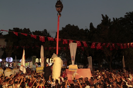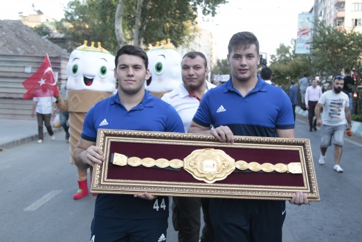 Festival kapsamında yapılan kortejde, yapılacak güreş müsabakalarında verilecek altın kemer güreşçilerle taşındı.