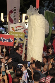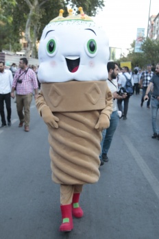 Festival kapsamında hazırlanan ve şehrin maskotu olan dondurma şeklindeki "Edecan" da kortejde yer aldı.