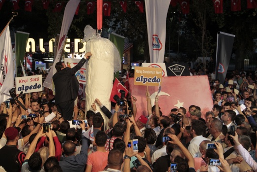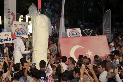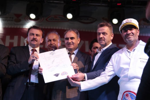 Kahramanmaraş'ta 1. Uluslararası Kahramanmaraş Dondurma ve Kültür Festivali kapsamında, dünyanın en uzun çengel dondurması ile en büyük Türk bayraklı dondurması için rekor denemesi yapıldı.