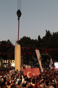 Dünyanın en uzun dondurma denemesinin ölçümü Büyükşehir Belediye Başkanı Fatih Mehmet Erkoç tarafından yapıldı.