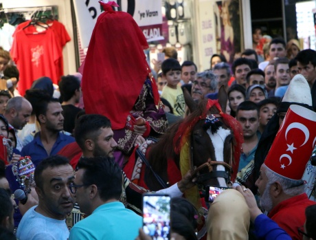 Demokrasi Meydanı'nda davul zurna eşliğinde yöresel kıyafetler giyen gençler, at sırtında gelini Trabzon Caddesi'ne kadar getirdi.