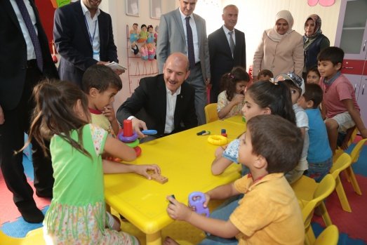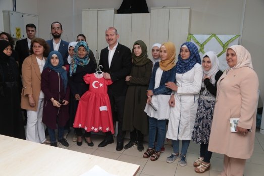 İçişleri Bakanı Süleyman Soylu, Kahramanmaraş Geçici Barınma Merkezi Halk Eğitim Merkezi'ni ziyaret etti.
