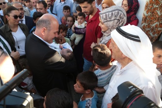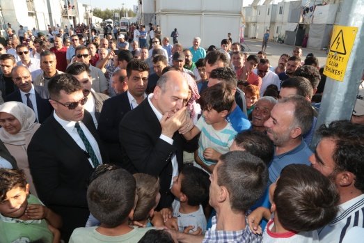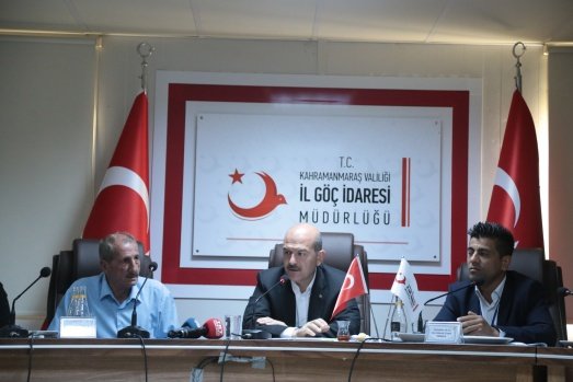 İçişleri Bakanı Süleyman Soylu, Kahramanmaraş Geçici Barınma Merkezi'nde Suriyeli kanaat önderleriyle bir araya geldi.