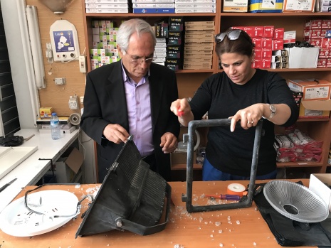 Erkeklerin daha fazla tercih ettiği elektrik teknikerliğini severek yapan Zahide Yılmaz, direklere tırmanıp arıza gidermenin yanı sıra bu alandaki tehlikeli birçok görevi yerine getiriyor. Kahramanmaraş'ta görev yapan Yılmaz, zaman zaman mesleğe başlamasına vesile olan babası Bektaş Zincirkıran'ın (solda) yanına giderek eski günlerini yad ediyor.
