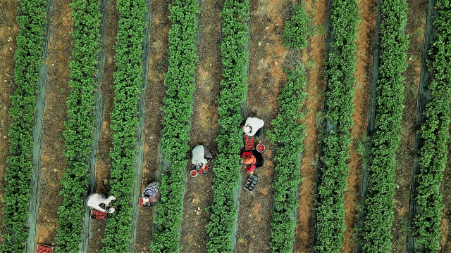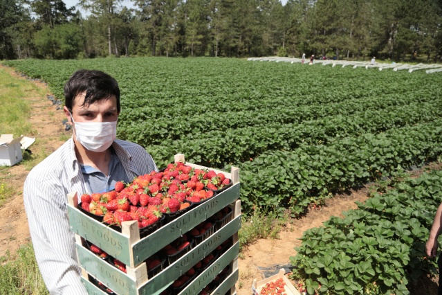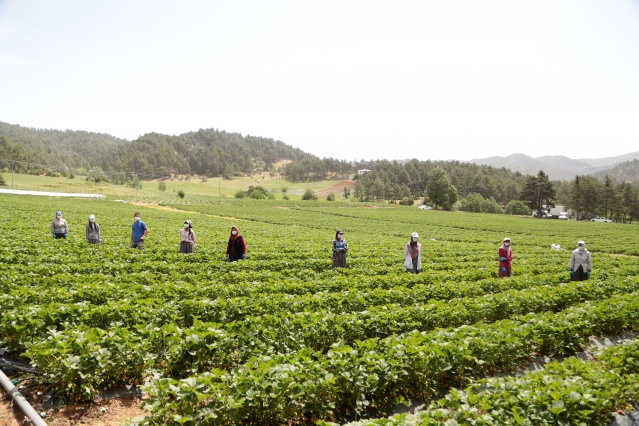 Bölgede günlük yaklaşık 7 ton çilek toplanırken hasat ekim ayına kadar devam edecek.