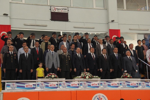 Osman Sayın Spor Salonunda ki Program Saat 11:00 de başladı. Programa; Kahramanmaraş Valisi Vahdettin ÖZKAN, 2.Zırhlı Tugay Komutanı Adnan KÖŞKER, İl Jandarma Komutanı J.Alb. Cafer ÖZ, Cumhuriyet Başa Savcısı İlker YAZICI, Büyükşehir Belediye Başkanı Fatih Mehmet Erkoç, Onikişubat Kaymakamı Mustafa ÇEK, Onikişubat Belediye Başkanı Hanefi MAHÇİÇEK, İl Emniyet Müdürü Doğan İNCİ, Mülki Amirler, Kurum ve Kuruluşların temsilcileri katıldılar. Kutlama Programlarını izlemek üzere Gençlerimiz, sporcularımız, Gazilerimiz ve çok sayıda vatandaşlarımız tribünler doldurdular.
