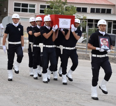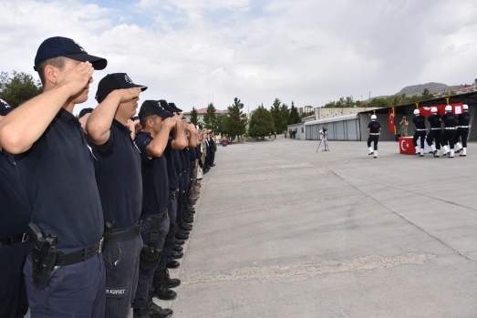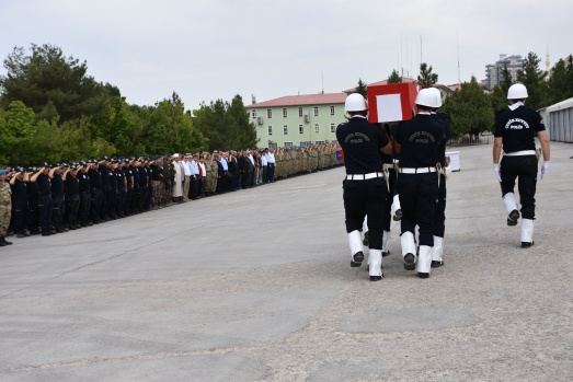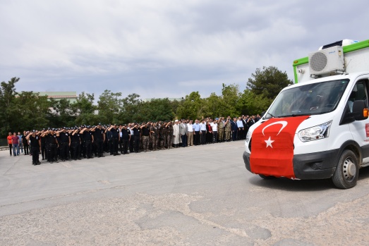 23. Jandarma Sınır Tümen Komutanlığındaki törende şehit polis Yardımcıoğlu'nun (32) Türk bayrağına sarılı naaşı, katafalka konuldu, saygı duruşunda bulunuldu, öz geçmişi okundu ve dua edildi.