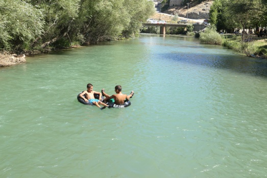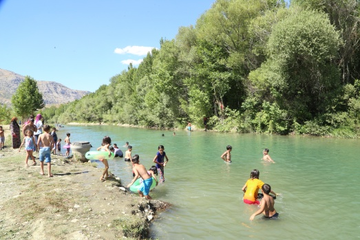 Sıcak havada Göksu Çayı'nda serinliyorlar