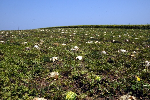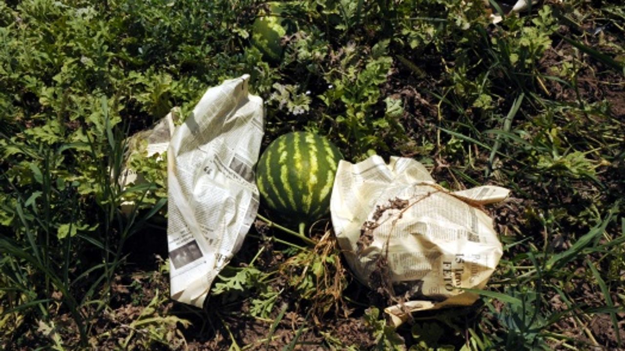 Osmaniye'de karpuz üreticileri, tarladaki ürünlerini aşırı sıcaklardan korumak için gazetelere sarıyor. Çukurova'da etkili olan sıcak hava, günlük yaşamın yanı sıra tarım arazilerindeki ürünlere de zarar verebiliyor. Ürünlerin sıcaktan etkilenmemesi için farklı yöntemler deneyen çiftçiler, tarladaki karpuzlarını güneş ışınlarından korumak için tek tek gazete kağıdıyla sarıyor.