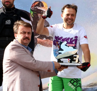 Türkiye Su Jeti ve Flyboard Şampiyonası'nın 3. ayak yarışmaları Kahramanmaraş'ta sona erdi. Kahramanmaraş Büyükşehir Belediye Başkanı Fatih Mehmet Erkoç, Su jeti erkeklerde üçüncü olan Hakan Akgül'e ödülünü verdi.