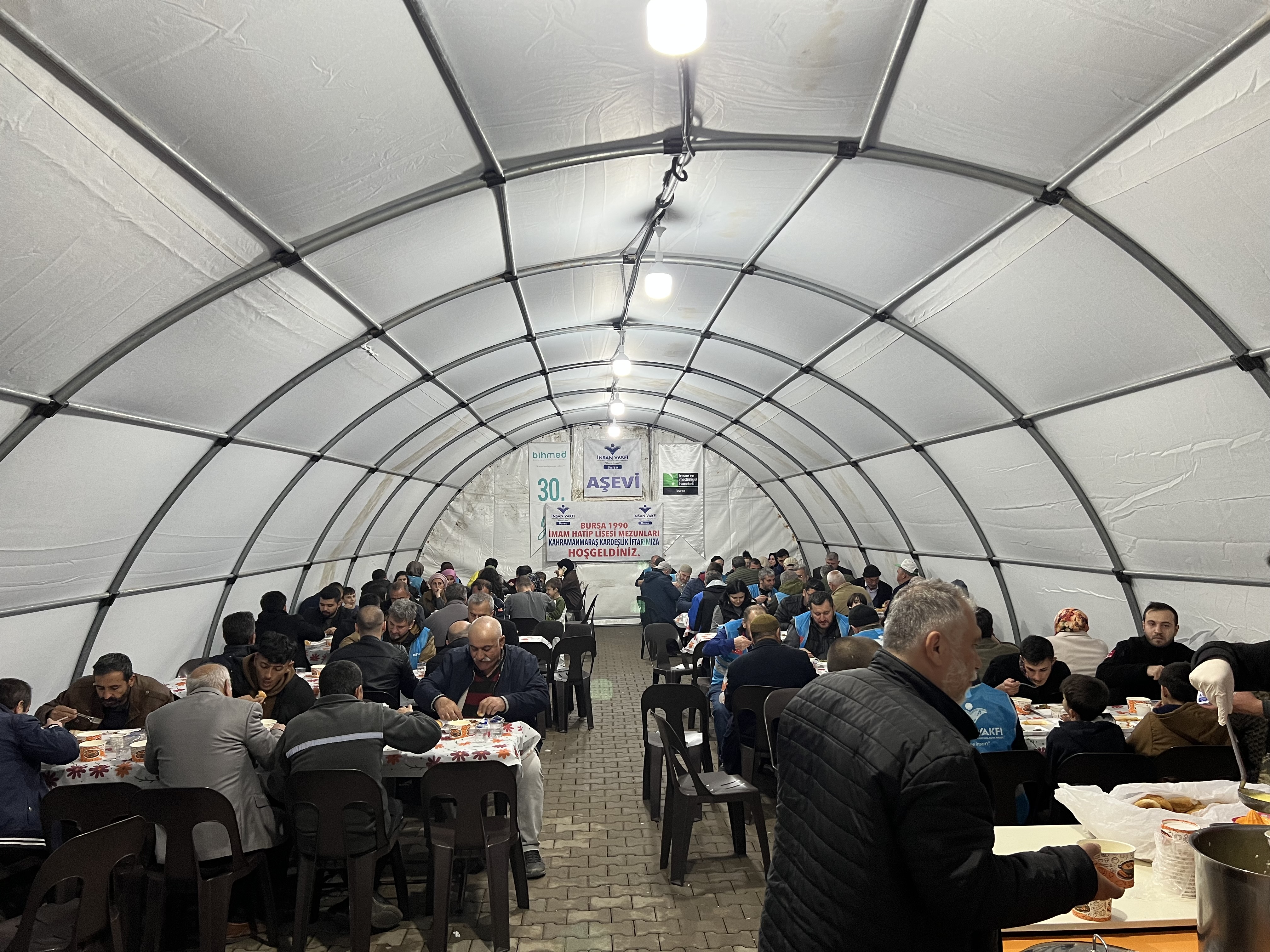 Afetin ilk gününden bu yana yaraları sarmak için gayret sarf eden insan, eğitim, kültür ve yardımlaşma vakıfı bursa şubesi ve Kahramanmaraş imam hatipliler derneği, kentte depremzedelerin barınma, giysi ve yiyecek ihtilaçlarının karşılanması noktasında aktif rol aldı.