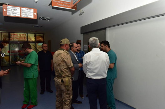 Vali Özkan, İl Sağlık Müdürü Uzm. Dr. Ali Nuri Öksüz ve doktorlardan askerlerin sağlık durumu hakkında bilgiler aldı.
