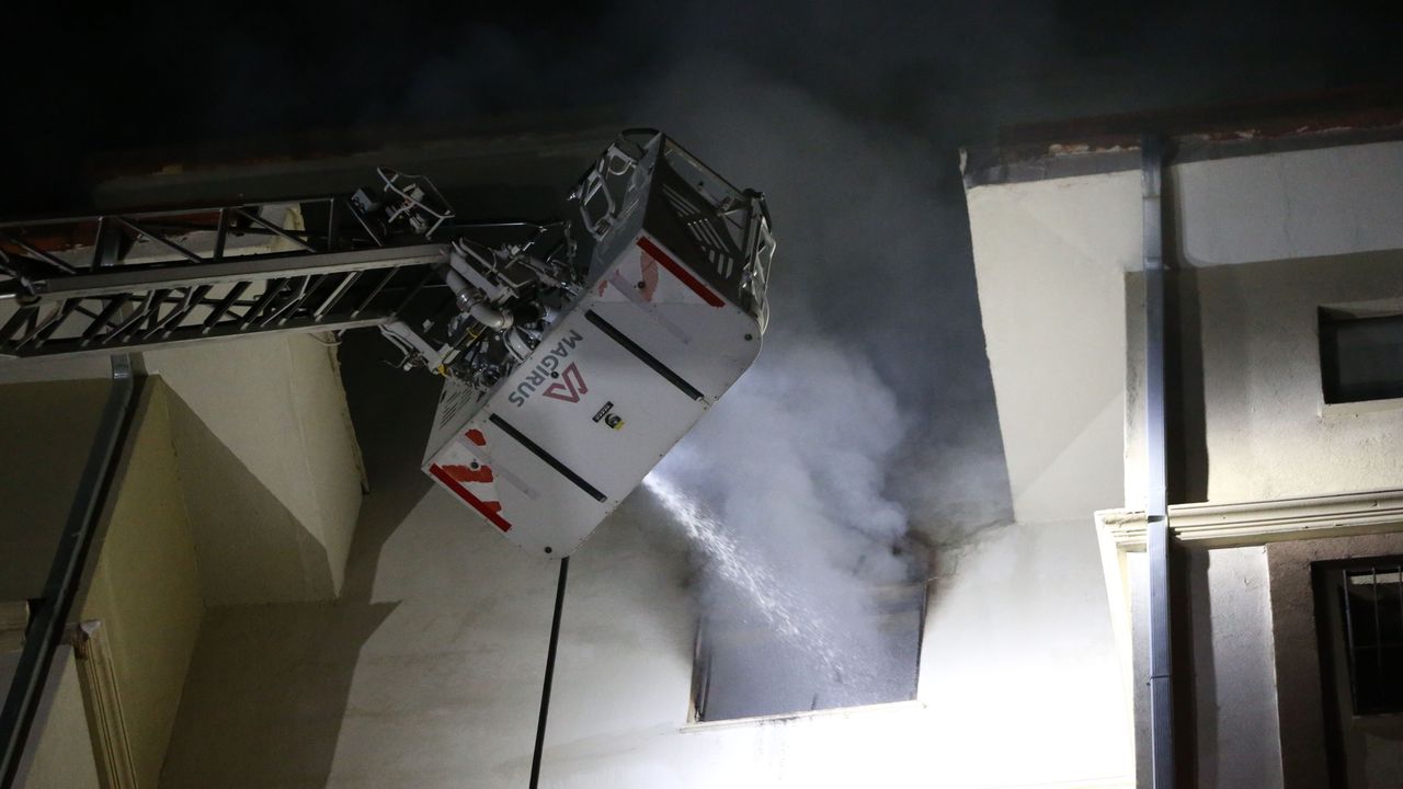 İtfaiyenin müdahalesiyle söndürülen yangında binada hasar oluştu.