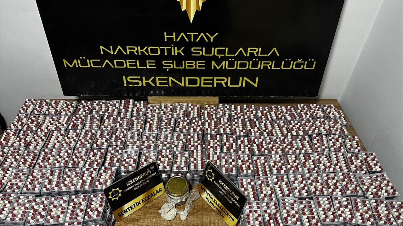 Hatay'ın Arsuz ilçesinde 21 bin 560 sentetik ecza hapı ve 24 gram sentetik uyuşturucu ele geçirildi, 2 şüpheli tutuklandı.