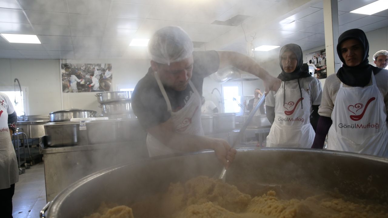 HATAY (AA) - Hatay'ın İskenderun ilçesinde depremlerin ardından gönüllülerin katılımıyla kurulan "Gönül Mutfağı"nda, afetin ikinci yılı dolayısıyla helva hazırlandı.