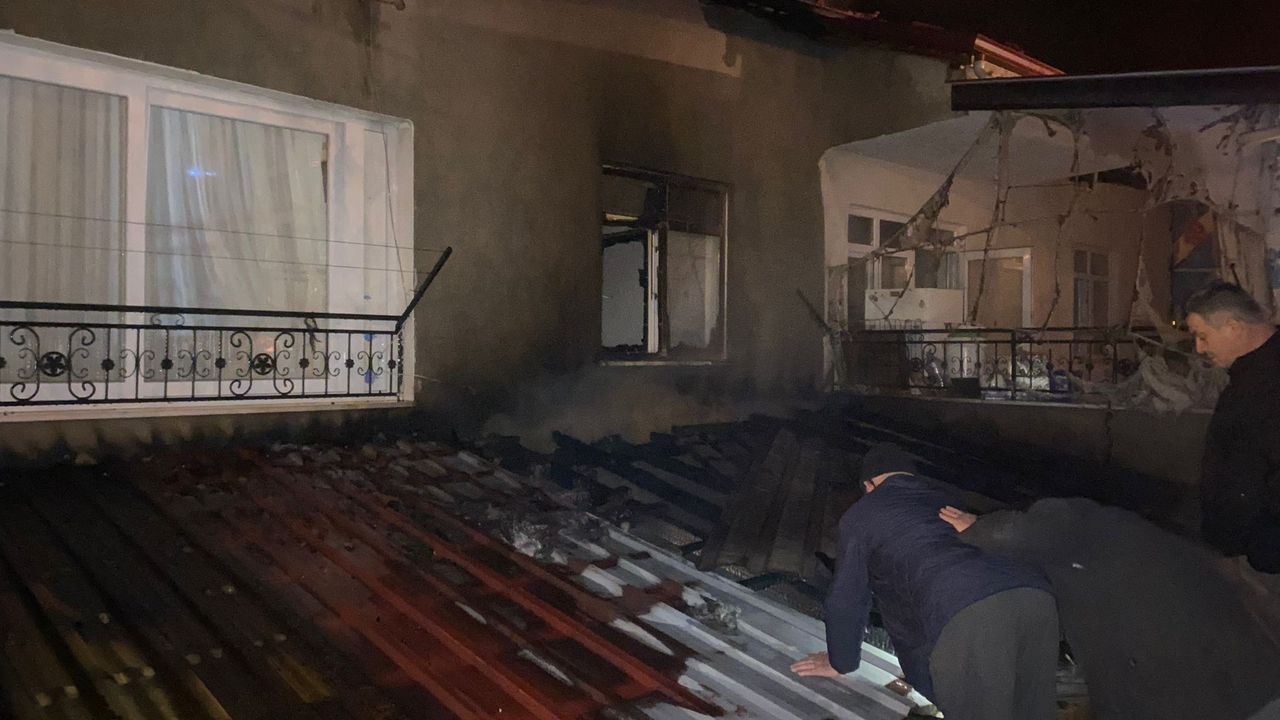 İtfaiye ekiplerinin söndürdüğü yangında, evin üst kısmı ve kazan dairesi kullanılamaz hale geldi.