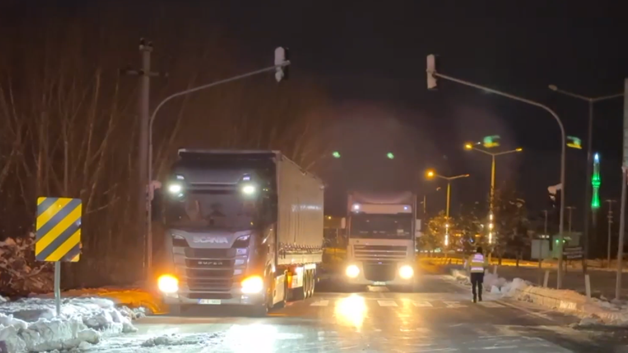 Kayseri-Göksun kara yolunda kar yağışı nedeniyle ağır tonajlı araçların geçişine izin verilmedi.