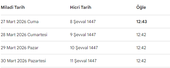 Kahramanmaraş'ta 27 Mart 2026 Cuma günü Cuma namazı saat 12:43'te eda edilecek.