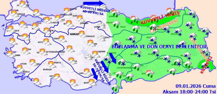 Ağrı, Artvin, Bingöl, Bitlis, Diyarbakır, Erzincan, Erzurum, Giresun, Gümüşhane, Hakkari, Hatay, Kars, Kahramanmaraş, Muş, Ordu, Rize, Samsun, Siirt, Trabzon, Tunceli, Van, Bayburt, Batman, Şırnak, Ardahan, Iğdır ve Osmaniye için "sarı" kodlu uyarıda bulunuldu.
