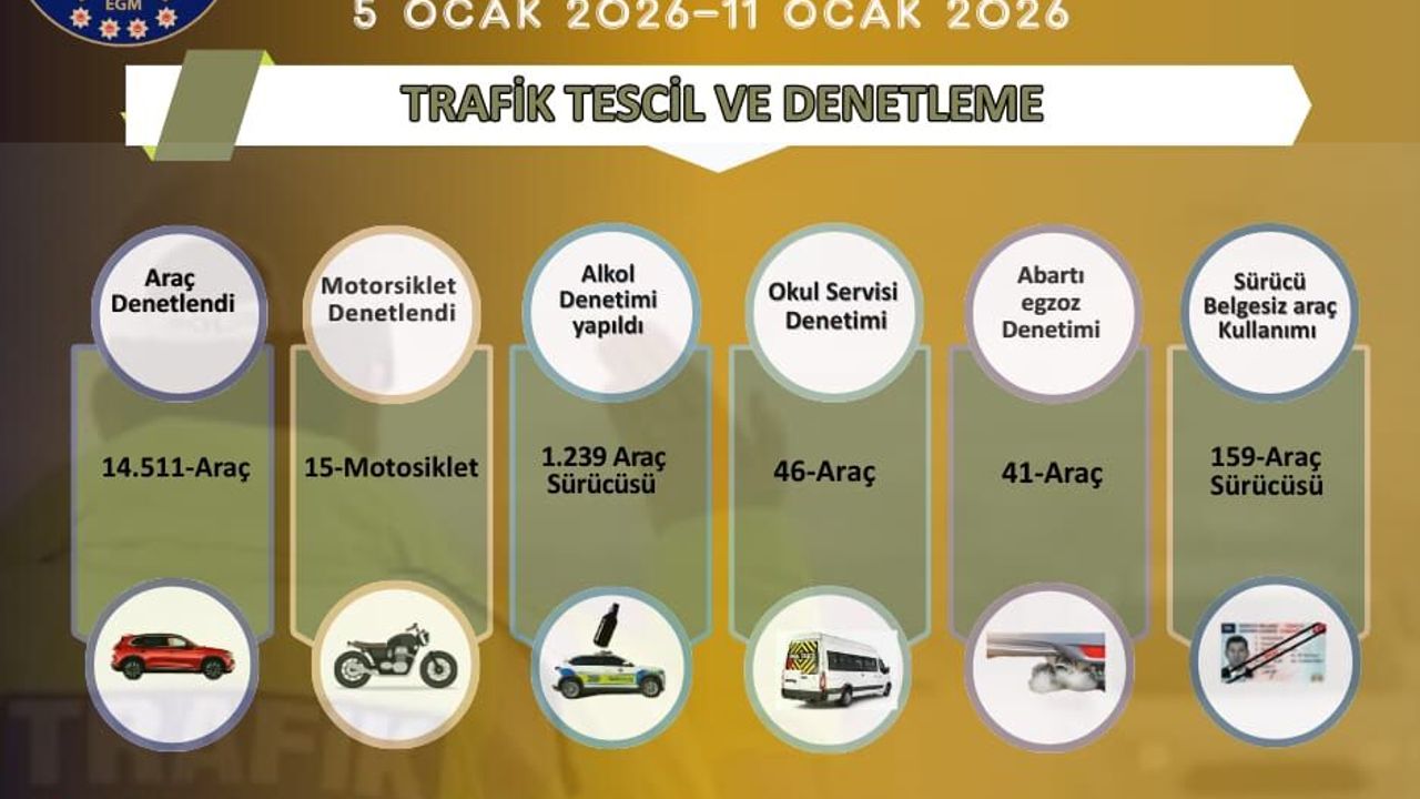 Hafta boyunca trafik güvenliğini sağlamak amacıyla 14 bin 511 araç denetlendi. Yapılan incelemeler sonucunda: