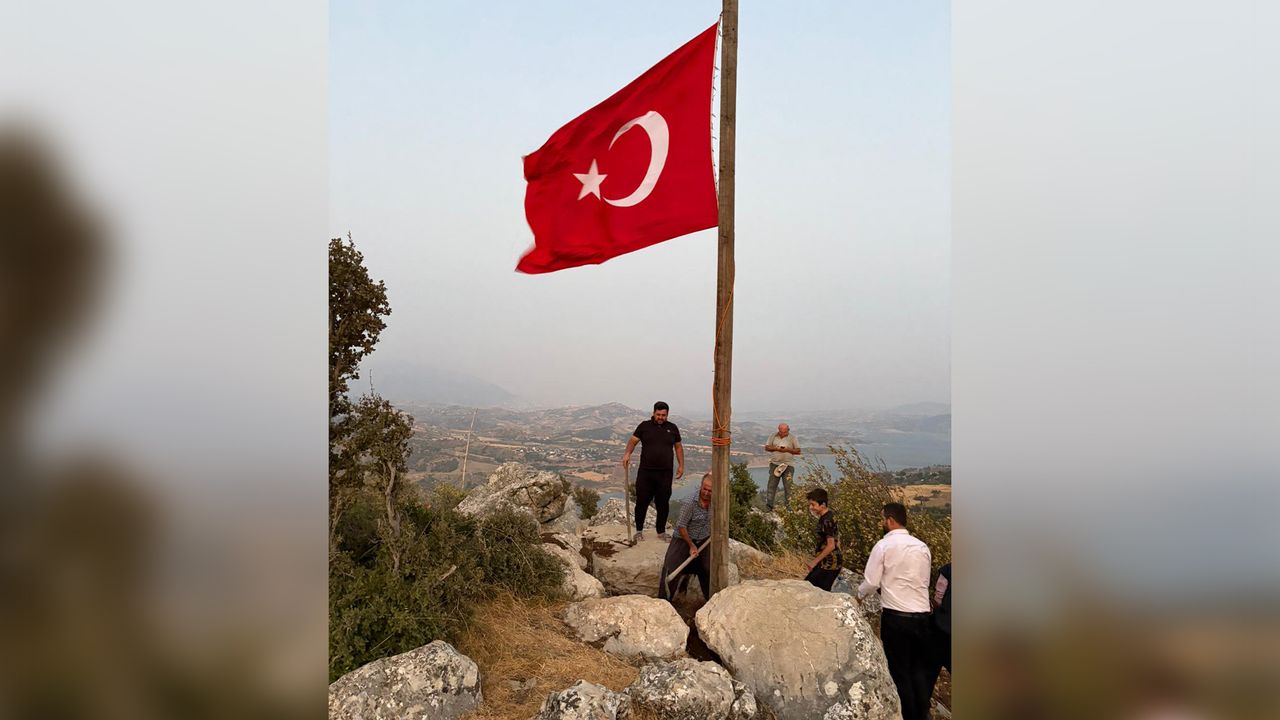Köy halkından Habib Korkusuz, Necati Korkusuz, Ramazan Alnarığ, Hüdayi Ayna ve Uğur Sinek, Demrek Mahallesi'nin Menteşe mevkiinde, Sır Barajı manzaralı bir alana dev bir Türk bayrağı diktiler.