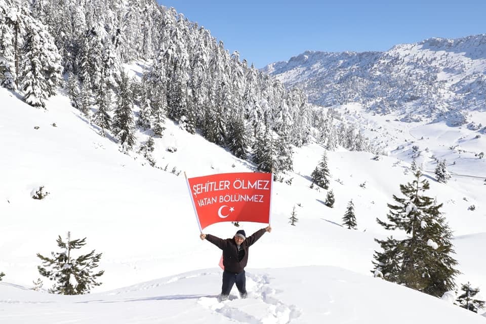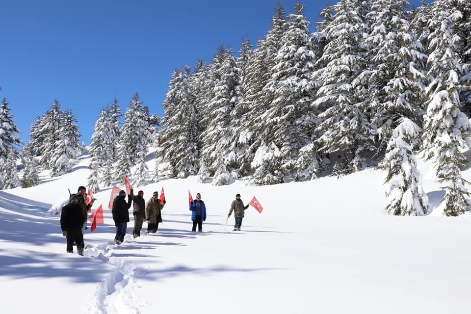 Andırın Belediye Başkanı Ahmet Doğan ile belediye meclisi üyelerinden oluşan 10 kişilik grup, kar kalınlığının yer yer 2 metreyi bulduğu bölgede zirve y saat süren tırmanış sonrası ulaştılar.