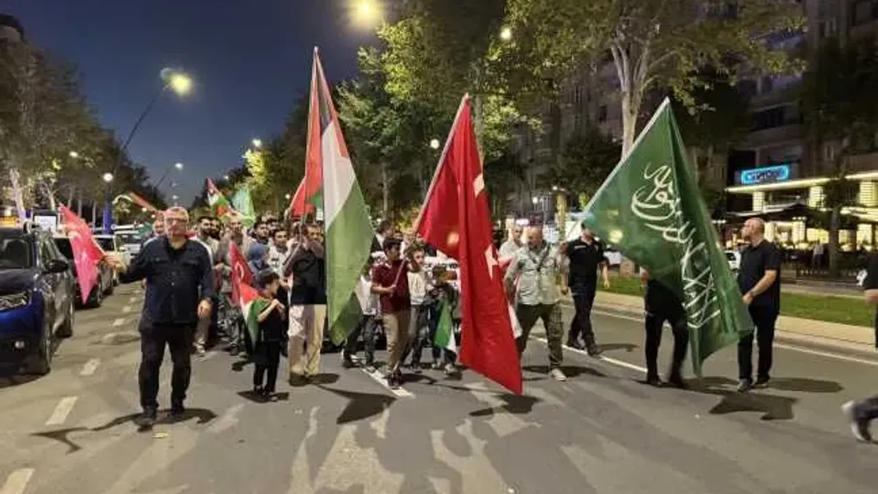 Esat Coşan Camisi önünde bir araya gelen vatandaşlar, ellerinde Türk ve Filistin bayraklarıyla 'Filistin'e özgürlük', 'Kahrolsun İsrail', 'Müslüman uyuma Filistin'e sahip çık' sloganları atarak Necip Fazıl Kültür Merkezi önüne kadar yürüdü.