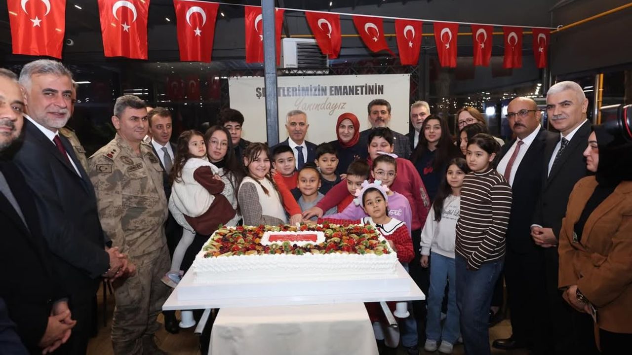 Duygu dolu anlara sahne olan programda şehit çocukları için hazırlanan büyük doğum günü pastası protokol üyeleri ve çocuklar ile birlikte kesildi.