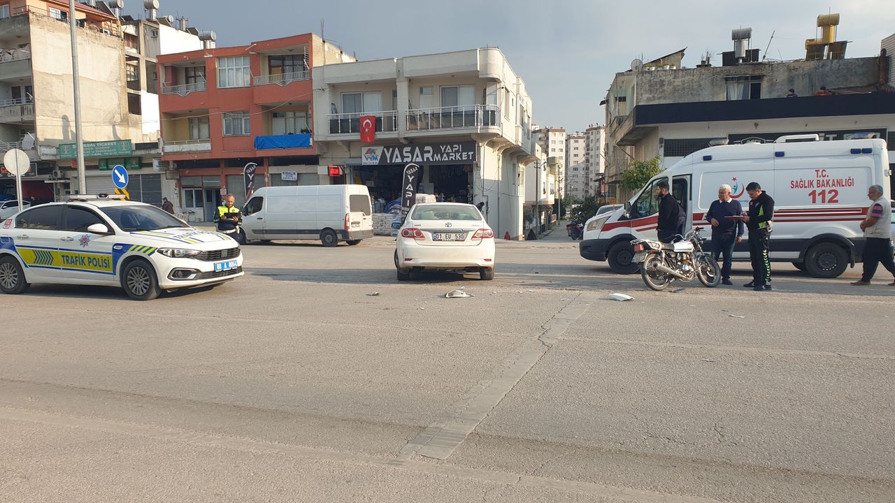 Sürücülerinin ismi öğrenilemeyen 01 EU 530 plakalı otomobil ile 80 ABA 168 plakalı motosiklet, Cemalpaşa Mahallesi Kamil Kara Bulvarı'nda çarpıştı.