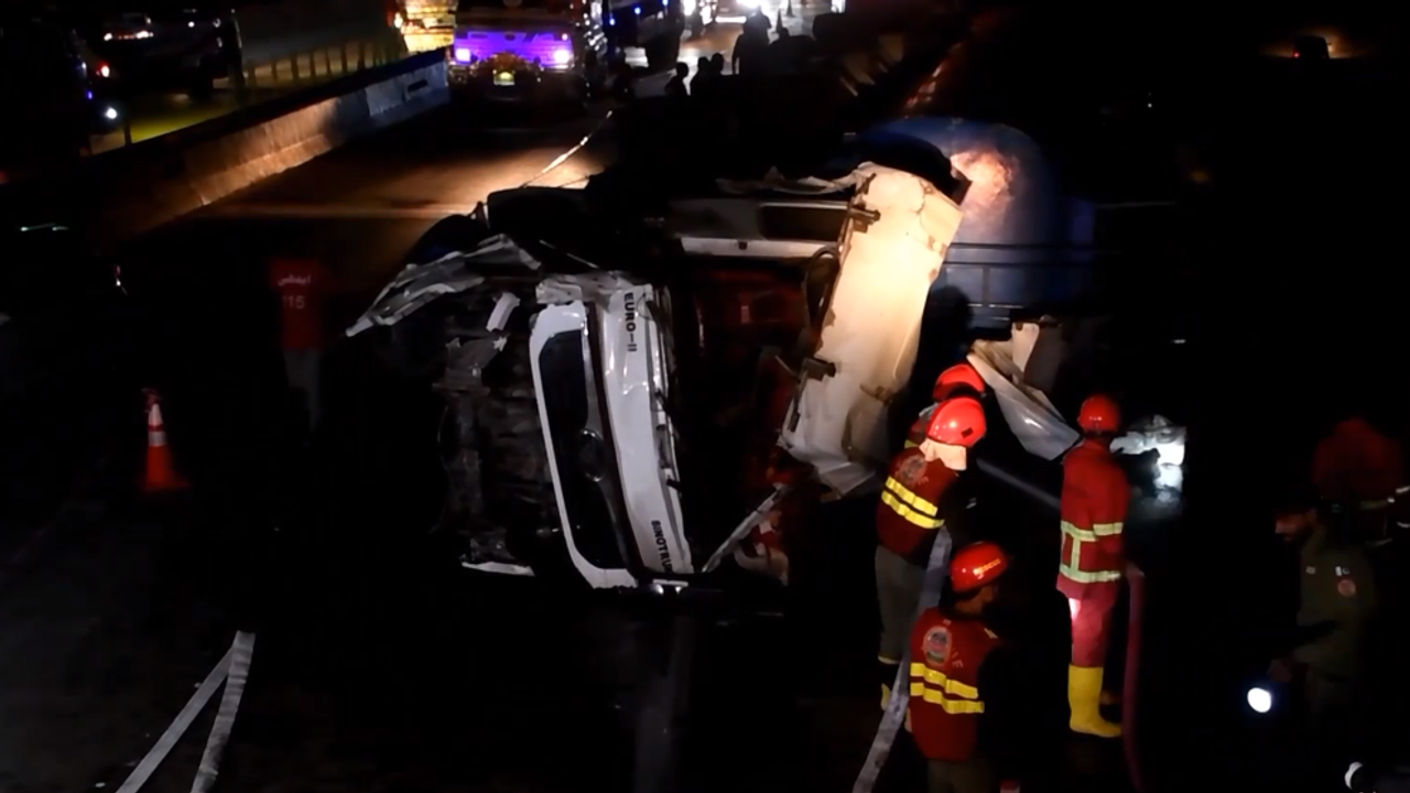 Ters yönde ilerleyen bir otobüsün neden olduğu kazada bir petrol tankeri devrildi.