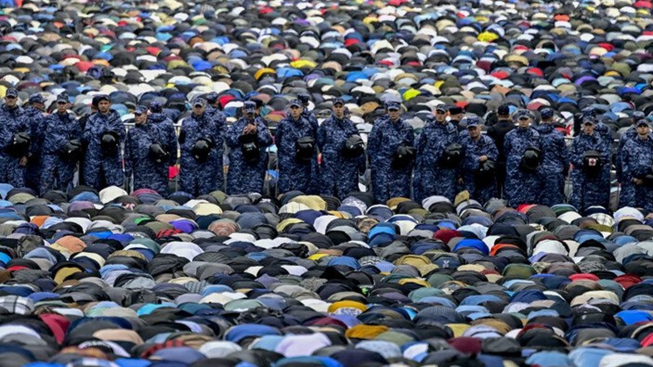Güvenlik önlemleri alındı: Yer bulamayan Müslümanlar sokaklarda namaz kıldı