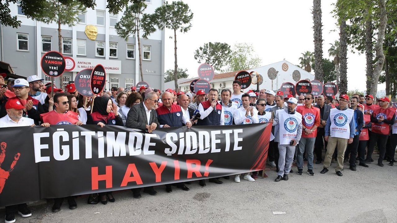 İl Milli Eğitim Müdürlüğü önünde bir araya gelen sendika temsilcileri ve üyeleri, okullarda meydana gelen silahlı saldırılara tepki gösterdi.